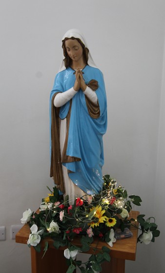 The school chapel is a welcoming place to all staff and students in the school. The chapel is open daily and frequently used by staff and pupils. The Blessed Sacrament is present. The chapel contains Stations of the Cross and Catholic Bibles, and is decorated to be a holy place – for reflection on the Glory of God. Staff and pupils welcome the use the of the chapel for private prayer opportunities. The Holy Mass is also said in the chapel on a termly basis, for staff and students.